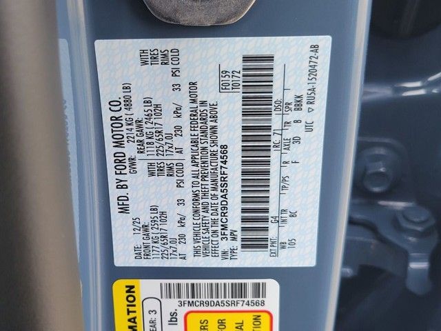 Badlands Tech Package (B&O Sound System by Bang & Olufsen, Connected Navigation, and HD Radio), Equipment Group 400A, 4-Wheel Disc Brakes, 6 Speakers, ABS brakes, Air Conditioning, Alloy wheels, AM/FM radio: SiriusXM, AM/FM Stereo, Auto High-beam Headlights, Auto-dimming Rear-View mirror, Automatic temperature control, Brake assist, Compass, Delay-off headlights, Driver door bin, Driver vanity mirror, Dual front impact airbags, Dual front side impact airbags, Electronic Stability Control, Emergency communication system: SYNC 4 911 Assist, Four wheel independent suspension, Front anti-roll bar, Front Bucket Seats, Front Center Armrest, Front fog lights, Front License Plate Bracket, Front reading lights, Fully automatic headlights, Garage door transmitter, Heated door mirrors, Heated front seats, Heated steering wheel, Illuminated entry, Knee airbag, Leather Trimmed Front Bucket Seats, Low tire pressure warning, Memory seat, Occupant sensing airbag, Outside temperature display, Overhead airbag, Overhead console, Panic alarm, Passenger door bin, Passenger vanity mirror, Power door mirrors, Power driver seat, Power Moonroof, Power passenger seat, Power steering, Power windows, Radio data system, Rear anti-roll bar, Rear reading lights, Rear seat center armrest, Rear window defroster, Rear window wiper, Remote keyless entry, Security system, SiriusXM, Speed control, Speed-sensing steering, Speed-Sensitive Wipers, Split folding rear seat, Steering wheel mounted audio controls, SYNC 4 w/Enhanced Voice Recognition, Tachometer, Telescoping steering wheel, Tilt steering wheel, Traction control, Trip computer, Variably intermittent wipers, and Wheels: 17" Matte Black-Painted Aluminum. *Some rebates have qualifications. ##Ford Credit Retail Bonus Cash Rebate requires Ford Credit financing, not all buyers will qualify. ##Select Inventory Retail Customer Cash Rebate, vehicle must have arrived 61 days or more prior to sale, limited supply. ##Open or Special Trade Assistance Cash Rebate requires Trade in vehicle that is 1995 or newer. ##Price includes: $1000 - Bonus Customer Cash. Exp. 03/31/2026 $2500 - Retail Customer Cash. Exp. 03/31/2026
