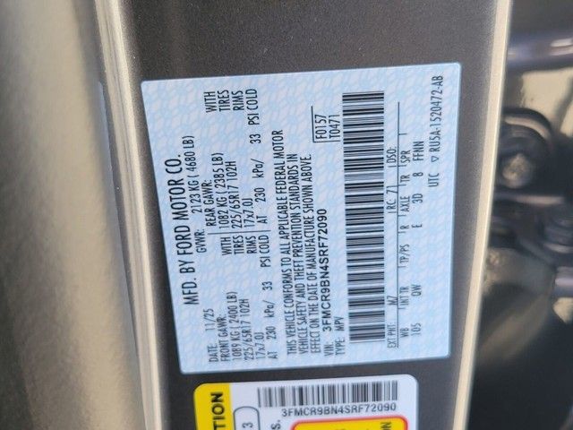 Equipment Group 200A, 4-Wheel Disc Brakes, 6 Speakers, ABS brakes, Air Conditioning, Alloy wheels, AM/FM radio: SiriusXM, AM/FM Stereo, Auto High-beam Headlights, Automatic temperature control, Brake assist, Cloth w/Easy-to-Clean Front Bucket Seats, Compass, Delay-off headlights, Driver door bin, Driver vanity mirror, Dual front impact airbags, Dual front side impact airbags, Electronic Stability Control, Emergency communication system: SYNC 4 911 Assist, Four wheel independent suspension, Front anti-roll bar, Front Bucket Seats, Front Center Armrest, Front License Plate Bracket, Front reading lights, Fully automatic headlights, Heated door mirrors, Illuminated entry, Knee airbag, Low tire pressure warning, Occupant sensing airbag, Outside temperature display, Overhead airbag, Overhead console, Panic alarm, Passenger door bin, Passenger vanity mirror, Power door mirrors, Power steering, Power windows, Radio data system, Rear anti-roll bar, Rear Parking Sensors, Rear reading lights, Rear seat center armrest, Rear window defroster, Rear window wiper, Remote keyless entry, Security system, SiriusXM, Speed control, Speed-sensing steering, Speed-Sensitive Wipers, Split folding rear seat, Steering wheel mounted audio controls, SYNC 4 w/Enhanced Voice Recognition, Tachometer, Telescoping steering wheel, Tilt steering wheel, Traction control, Trip computer, Variably intermittent wipers, and Wheels: 17" Carbonized Gray-Painted Aluminum. *Some rebates have qualifications. ##Ford Credit Retail Bonus Cash Rebate requires Ford Credit financing, not all buyers will qualify. ##Select Inventory Retail Customer Cash Rebate, vehicle must have arrived 61 days or more prior to sale, limited supply. ##Open or Special Trade Assistance Cash Rebate requires Trade in vehicle that is 1995 or newer. ##Price includes: $1000 - Bonus Customer Cash. Exp. 03/31/2026 $2000 - Retail Customer Cash. Exp. 03/31/2026