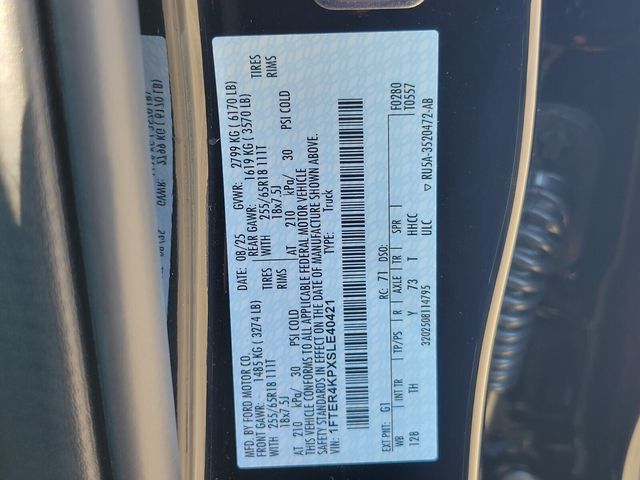 Black Appearance Package (Black Center Bar & Surround Grille, Black Rear Bumper, Body-Color Painted Front Fascia, Front & Rear Black Ford Ovals, Painted Body-Color Wheel Lip Molding, Unique Carpet Mats, and Wheels: 18" Black Painted), Equipment Group 500A Standard, Sport Appearance Package (Gray Painted Center Bar & Grille Surround, Gray Painted Front Fascia & Rear Bumper, and Sport Box Decal), 4WD, 10 Speakers, 4-Wheel Disc Brakes, ABS brakes, Air Conditioning, Alloy wheels, AM/FM radio: SiriusXM, Auto High-beam Headlights, Auto-dimming Rear-View mirror, Automatic temperature control, Brake assist, Compass, Delay-off headlights, Driver door bin, Driver vanity mirror, Dual front impact airbags, Dual front side impact airbags, Electronic Stability Control, Emergency communication system: SYNC 4 911 Assist, Front anti-roll bar, Front Bucket Seats, Front Center Armrest, Front dual zone A/C, Front fog lights, Front License Plate Bracket, Front reading lights, Front wheel independent suspension, Fully automatic headlights, Garage door transmitter, Heated door mirrors, Heated front seats, Heated steering wheel, Illuminated entry, Internet access capable: FordPass Connect 4G, Leather Shift Knob, Leather steering wheel, Leather-Trimmed Front Heated Bucket Seats, Low tire pressure warning, Memory seat, Navigation system: Connected Navigation, Occupant sensing airbag, Outside temperature display, Overhead airbag, Overhead console, Panic alarm, Passenger door bin, Passenger vanity mirror, Power door mirrors, Power driver seat, Power passenger seat, Power steering, Power windows, Radio: B&O Sound System by Bang & Olufsen, Rain sensing wipers, Rear reading lights, Rear seat center armrest, Rear step bumper, Rear window defroster, Remote keyless entry, Security system, SiriusXM Satellite Radio, Speed control, Speed-sensing steering, Steering wheel mounted audio controls, SYNC 4A w/Connected Navigation, Telescoping steering wheel, Tilt steering wheel, Tough Bed Spray-In Bedliner, Traction control, Trip computer, Turn signal indicator mirrors, Under Rear Seat In-Vehicle Safe, Variably intermittent wipers, Voltmeter, and Wheels: 18" Machined Aluminum w/Dark Pockets. *Some rebates have qualifications. ##Ford Credit Retail Bonus Cash Rebate requires Ford Credit financing, not all buyers will qualify. ##Select Inventory Retail Customer Cash Rebate, vehicle must have arrived 61 days or more prior to sale, limited supply. ##Open or Special Trade Assistance Cash Rebate requires Trade in vehicle that is 1995 or newer. ##Price includes: $1000 - Final Days Mega Bonus Cash. Exp. 01/02/2026 $2000 - Bonus Customer Cash. Exp. 01/05/2026