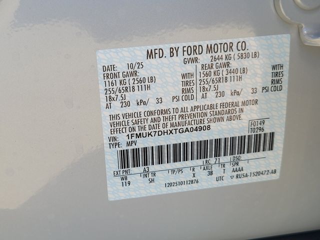 - VIN : 1FMUK7DHXTGA04908