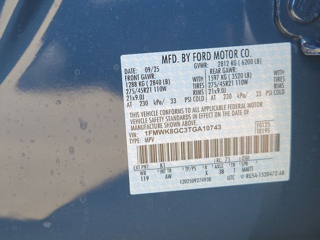 4WD, 10 Speakers, 3rd row seats: bench, 4-Wheel Disc Brakes, ABS brakes, Air Conditioning, Alloy wheels, AM/FM radio: SiriusXM with 360L, Apple CarPlay/Android Auto, Auto High-beam Headlights, Auto-dimming door mirrors, Auto-dimming Rear-View mirror, Automatic temperature control, Brake assist, Bumpers: body-color, Compass, Delay-off headlights, Driver door bin, Driver vanity mirror, Dual front impact airbags, Dual front side impact airbags, Electronic Stability Control, Emergency communication system: 911 Assist, Exterior Parking Camera Rear, Four wheel independent suspension, Front anti-roll bar, Front Bucket Seats, Front Center Armrest, Front dual zone A/C, Front fog lights, Front reading lights, Fully automatic headlights, Garage door transmitter, Heated door mirrors, Heated front seats, Heated rear seats, Heated steering wheel, Heated/Ventilated Miko Captain's Chairs, Illuminated entry, Internet access capable: FordPass Connect 5G, Knee airbag, Leather steering wheel, Low tire pressure warning, Memory seat, Navigation System, Occupant sensing airbag, Outside temperature display, Overhead airbag, Overhead console, Panic alarm, Passenger door bin, Passenger vanity mirror, Power door mirrors, Power driver seat, Power Liftgate, Power passenger seat, Power steering, Power windows, Radio: B&O Sound System by Bang and Olufsen, Rain sensing wipers, Rear air conditioning, Rear anti-roll bar, Rear reading lights, Rear window defroster, Rear window wiper, Remote keyless entry, Security system, Speed control, Speed-sensing steering, Speed-Sensitive Wipers, Split folding rear seat, Spoiler, Sport steering wheel, Steering wheel mounted audio controls, Tachometer, Telescoping steering wheel, Tilt steering wheel, Traction control, Trip computer, Turn signal indicator mirrors, Variably intermittent wipers, Ventilated front seats, and Wheels: 21" Magnetite-Painted Aluminum. *Some rebates have qualifications. ##Ford Credit Retail Bonus Cash Rebate requires Ford Credit financing, not all buyers will qualify. ##Select Inventory Retail Customer Cash Rebate, vehicle must have arrived 61 days or more prior to sale, limited supply. ##Open or Special Trade Assistance Cash Rebate requires Trade in vehicle that is 1995 or newer. ##Price includes: $500 - Bonus Customer Cash. Exp. 01/05/2026