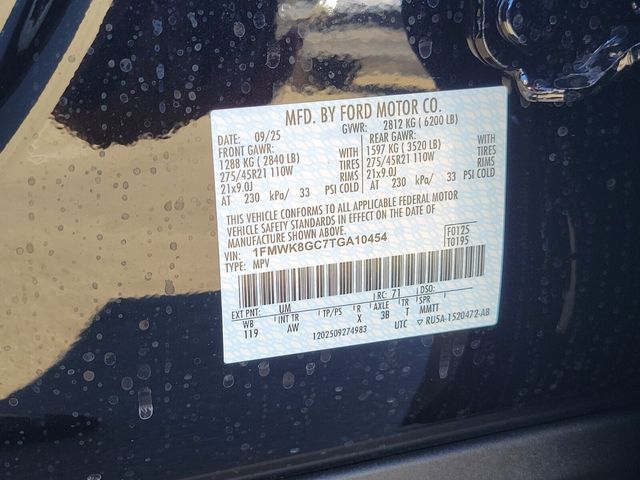 4WD, 10 Speakers, 3rd row seats: bench, 4-Wheel Disc Brakes, ABS brakes, Air Conditioning, Alloy wheels, AM/FM radio: SiriusXM with 360L, Apple CarPlay/Android Auto, Auto High-beam Headlights, Auto-dimming door mirrors, Auto-dimming Rear-View mirror, Automatic temperature control, Brake assist, Bumpers: body-color, Compass, Delay-off headlights, Driver door bin, Driver vanity mirror, Dual front impact airbags, Dual front side impact airbags, Electronic Stability Control, Emergency communication system: 911 Assist, Exterior Parking Camera Rear, Four wheel independent suspension, Front anti-roll bar, Front Bucket Seats, Front Center Armrest, Front dual zone A/C, Front fog lights, Front reading lights, Fully automatic headlights, Garage door transmitter, Heated door mirrors, Heated front seats, Heated rear seats, Heated steering wheel, Heated/Ventilated Miko Captain's Chairs, Illuminated entry, Internet access capable: FordPass Connect 5G, Knee airbag, Leather steering wheel, Low tire pressure warning, Memory seat, Navigation System, Occupant sensing airbag, Outside temperature display, Overhead airbag, Overhead console, Panic alarm, Passenger door bin, Passenger vanity mirror, Power door mirrors, Power driver seat, Power Liftgate, Power passenger seat, Power steering, Power windows, Radio: B&O Sound System by Bang and Olufsen, Rain sensing wipers, Rear air conditioning, Rear anti-roll bar, Rear reading lights, Rear window defroster, Rear window wiper, Remote keyless entry, Security system, Speed control, Speed-sensing steering, Speed-Sensitive Wipers, Split folding rear seat, Spoiler, Sport steering wheel, Steering wheel mounted audio controls, Tachometer, Telescoping steering wheel, Tilt steering wheel, Traction control, Trip computer, Turn signal indicator mirrors, Variably intermittent wipers, Ventilated front seats, and Wheels: 21" Magnetite-Painted Aluminum. *Some rebates have qualifications. ##Ford Credit Retail Bonus Cash Rebate requires Ford Credit financing, not all buyers will qualify. ##Select Inventory Retail Customer Cash Rebate, vehicle must have arrived 61 days or more prior to sale, limited supply. ##Open or Special Trade Assistance Cash Rebate requires Trade in vehicle that is 1995 or newer. ##Price includes: $500 - Bonus Customer Cash. Exp. 01/05/2026