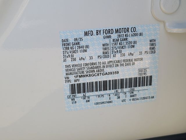 4WD, 10 Speakers, 3rd row seats: bench, 4-Wheel Disc Brakes, ABS brakes, Air Conditioning, Alloy wheels, AM/FM radio: SiriusXM with 360L, Apple CarPlay/Android Auto, Auto High-beam Headlights, Auto-dimming door mirrors, Auto-dimming Rear-View mirror, Automatic temperature control, Brake assist, Bumpers: body-color, Compass, Delay-off headlights, Driver door bin, Driver vanity mirror, Dual front impact airbags, Dual front side impact airbags, Electronic Stability Control, Emergency communication system: 911 Assist, Exterior Parking Camera Rear, Four wheel independent suspension, Front anti-roll bar, Front Bucket Seats, Front Center Armrest, Front dual zone A/C, Front fog lights, Front reading lights, Fully automatic headlights, Garage door transmitter, Heated door mirrors, Heated front seats, Heated rear seats, Heated steering wheel, Heated/Ventilated Miko Captain's Chairs, Illuminated entry, Internet access capable: FordPass Connect 5G, Knee airbag, Leather steering wheel, Low tire pressure warning, Memory seat, Navigation System, Occupant sensing airbag, Outside temperature display, Overhead airbag, Overhead console, Panic alarm, Passenger door bin, Passenger vanity mirror, Power door mirrors, Power driver seat, Power Liftgate, Power passenger seat, Power steering, Power windows, Radio: B&O Sound System by Bang and Olufsen, Rain sensing wipers, Rear air conditioning, Rear anti-roll bar, Rear reading lights, Rear window defroster, Rear window wiper, Remote keyless entry, Security system, Speed control, Speed-sensing steering, Speed-Sensitive Wipers, Split folding rear seat, Spoiler, Sport steering wheel, Steering wheel mounted audio controls, Tachometer, Telescoping steering wheel, Tilt steering wheel, Traction control, Trip computer, Turn signal indicator mirrors, Variably intermittent wipers, Ventilated front seats, and Wheels: 21" Magnetite-Painted Aluminum. *Some rebates have qualifications. ##Ford Credit Retail Bonus Cash Rebate requires Ford Credit financing, not all buyers will qualify. ##Select Inventory Retail Customer Cash Rebate, vehicle must have arrived 61 days or more prior to sale, limited supply. ##Open or Special Trade Assistance Cash Rebate requires Trade in vehicle that is 1995 or newer. ##Price includes: $500 - Bonus Customer Cash. Exp. 01/05/2026