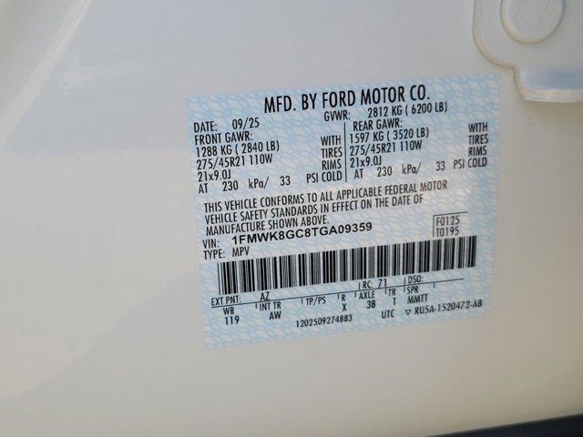 - VIN : 1FMWK8GC8TGA09359