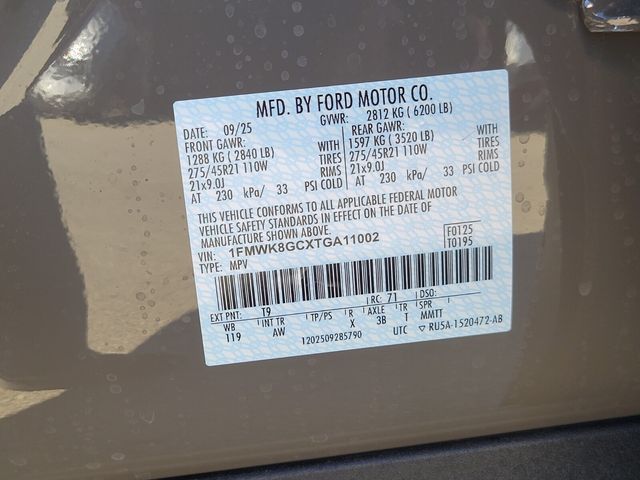 Equipment Group 400A Standard Package (Heated/Ventilated Miko Captain's Chairs, Radio: B&O Sound System by Bang and Olufsen, and Wheels: 21" Magnetite-Painted Aluminum), Sun and Sound Package (Multicontour Seats with Front Active Motion, Panoramic Fixed Glass Roof with Power Shade, Radio: B&O Sound System by Bang & Olufsen, and Remote Control Front Windows), 4WD, 10 Speakers, 3rd row seats: bench, 4-Wheel Disc Brakes, ABS brakes, Air Conditioning, Alloy wheels, AM/FM radio: SiriusXM with 360L, Apple CarPlay/Android Auto, Auto High-beam Headlights, Auto-dimming door mirrors, Auto-dimming Rear-View mirror, Automatic temperature control, BlueCruise Equipped (1-Year + 90-Day Plan), Brake assist, Bumpers: body-color, Compass, Delay-off headlights, Driver door bin, Driver vanity mirror, Dual front impact airbags, Dual front side impact airbags, Electronic Stability Control, Emergency communication system: 911 Assist, Exterior Parking Camera Rear, Four wheel independent suspension, Front anti-roll bar, Front Bucket Seats, Front Center Armrest, Front dual zone A/C, Front fog lights, Front License Plate Bracket, Front reading lights, Fully automatic headlights, Garage door transmitter, Heated door mirrors, Heated front seats, Heated rear seats, Heated steering wheel, Illuminated entry, Internet access capable: FordPass Connect 5G, Knee airbag, Leather steering wheel, Low tire pressure warning, Memory seat, Navigation System, Occupant sensing airbag, Outside temperature display, Overhead airbag, Overhead console, Panic alarm, Passenger door bin, Passenger vanity mirror, Power door mirrors, Power driver seat, Power Liftgate, Power passenger seat, Power steering, Power windows, Rain sensing wipers, Rear air conditioning, Rear anti-roll bar, Rear reading lights, Rear window defroster, Rear window wiper, Remote keyless entry, SecuriCode Keyless Entry Keypad, Security system, Speed control, Speed-sensing steering, Speed-Sensitive Wipers, Split folding rear seat, Spoiler, Sport steering wheel, Steering wheel mounted audio controls, Tachometer, Telescoping steering wheel, Tilt steering wheel, Traction control, Trip computer, Turn signal indicator mirrors, Variably intermittent wipers, and Ventilated front seats. *Some rebates have qualifications. ##Ford Credit Retail Bonus Cash Rebate requires Ford Credit financing, not all buyers will qualify. ##Select Inventory Retail Customer Cash Rebate, vehicle must have arrived 61 days or more prior to sale, limited supply. ##Open or Special Trade Assistance Cash Rebate requires Trade in vehicle that is 1995 or newer. ##Price includes: $500 - Bonus Customer Cash. Exp. 01/05/2026
