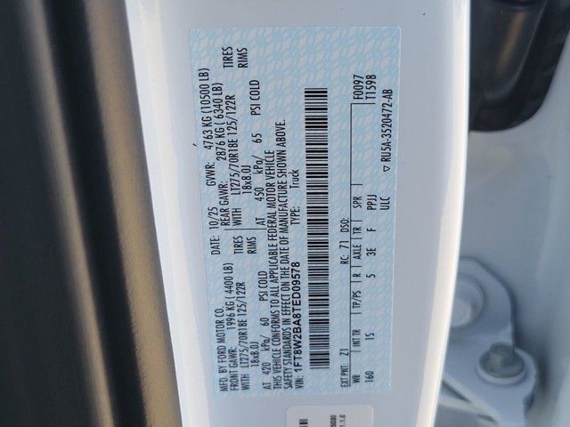 360-Degree Camera Package (360-Degree Camera, BLIS with Cross-Traffic Alert, LED Center High-Mounted Stop Lamp (CHMSL) Camera, and Rear Parking Sensors), Ford Connectivity Package (1-Year Included), FX4 Off-Road Package (Hill Descent Control, Off-Road Specifically Tuned Shock Absorbers, and Unique FX4 Off-Road Box Decal), GVWR: 10,000 Lb Payload Package, GVWR: F-250 >10K Package, Internet access capable: 5G Modem - Ford Connectivity Package, Order Code 600A (17" Argent Painted Steel Wheels, HD Vinyl 40/20/40 Split Bench Seat, Radio: AM/FM Stereo with MP3 Player, and SYNC 4), STX Appearance Package (Body-Color Front Bumper, Body-Color Rear Bumper, Color-Coordinated Full Carpet with Floor Mats, LED Fog Lamps, Painted Grille, and Wheels: 18" Ebony Black Painted Aluminum), XL Driver Assist Package, 4WD, 4-Wheel Disc Brakes, 6 Speakers, ABS brakes, Air Conditioning, AM/FM radio, Brake assist, Compass, Delay-off headlights, Dual front impact airbags, Dual front side impact airbags, Electronic Stability Control, Emergency communication system: SYNC 4 911 Assist, Exterior Parking Camera Rear, Front anti-roll bar, Front Center Armrest w/Storage, Front License Plate Bracket, Front reading lights, Fully automatic headlights, Heated door mirrors, Illuminated entry, LED Box Lighting, Low tire pressure warning, Outside temperature display, Overhead airbag, Overhead console, Panic alarm, Passenger vanity mirror, Platform Running Boards, Power door mirrors, Power steering, Power windows, Pro Power Onboard - 400W, Rear reading lights, Rear step bumper, Remote keyless entry, Security system, Speed control, Split folding rear seat, Steering wheel mounted audio controls, Tachometer, Telescoping steering wheel, Tilt steering wheel, Traction control, Trailer Brake Controller, Trip computer, Turn signal indicator mirrors, Upfitter Switches (6), and Variably intermittent wipers. *Some rebates have qualifications. ##Ford Credit Retail Bonus Cash Rebate requires Ford Credit financing, not all buyers will qualify. ##Select Inventory Retail Customer Cash Rebate, vehicle must have arrived 61 days or more prior to sale, limited supply. ##Open or Special Trade Assistance Cash Rebate requires Trade in vehicle that is 1995 or newer. ##Price includes: $1000 - Retail Customer Cash. Exp. 03/31/2026 $500 - Final Days Retail Customer Cash. Exp. 03/31/2026