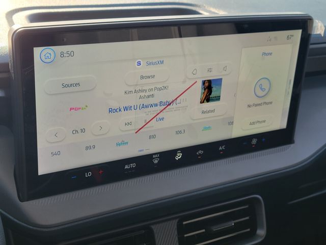 Ford Connectivity Package (1-Year Included), Internet access capable: 5G Modem - Ford Connectivity Package, 2.91 Axle Ratio, 4-Wheel Disc Brakes, 6 Speakers, ABS brakes, Air Conditioning, AM/FM radio: SiriusXM with 360L, Apple CarPlay/Android Auto, Auto High Beams, Auto High-beam Headlights, Automatic temperature control, Brake assist, Bumpers: body-color, Compass, Delay-off headlights, Driver door bin, Driver vanity mirror, Dual front impact airbags, Dual front side impact airbags, Electronic Stability Control, Emergency communication system: SYNC 4 911 Assist, Exterior Parking Camera Rear, Front anti-roll bar, Front Bucket Seats, Front Center Armrest, Front Cloth Bucket Seats, Front reading lights, Front wheel independent suspension, Fully automatic headlights, Illuminated entry, Intersection Assist, Knee airbag, Lane-Keeping System, Low tire pressure warning, Occupant sensing airbag, Outside temperature display, Overhead airbag, Overhead console, Panic alarm, Passenger door bin, Passenger vanity mirror, Power steering, Power windows, Pre-Collision Assist with Automatic Emergency Braking, Radio data system, Radio: AM/FM Stereo with 6 Speakers, Rear anti-roll bar, Rear step bumper, Rear-View Camera, Remote keyless entry, SiriusXM with 360L, Speed control, Speed-sensing steering, Steering wheel mounted audio controls, SYNC 4 with Enhanced Voice Recognition, Telescoping steering wheel, Tilt steering wheel, Traction control, Trip computer, and Wheels: 17" Steel with Sparkle Silver Painted Cover.