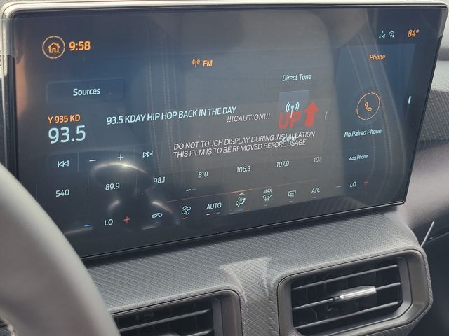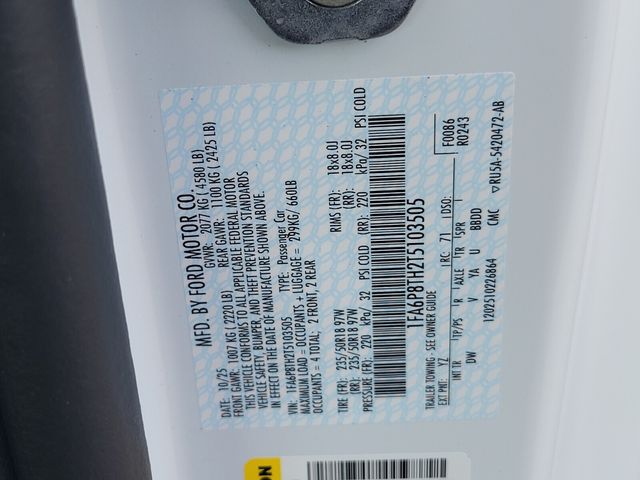 4-Wheel Disc Brakes, ABS brakes, Air Conditioning, Alloy wheels, AM/FM Stereo, Auto High-beam Headlights, Automatic temperature control, Brake assist, Bumpers: body-color, Compass, Delay-off headlights, Driver door bin, Driver vanity mirror, Dual front impact airbags, Dual front side impact airbags, Electronic Stability Control, Emergency communication system: 911 Assist, Exterior Parking Camera Rear, Four wheel independent suspension, Front anti-roll bar, Front Bucket Seats, Front Center Armrest, Front dual zone A/C, Front reading lights, Fully automatic headlights, Illuminated entry, Internet access capable: FordPass Connect, Knee airbag, Leather Shift Knob, Low tire pressure warning, Occupant sensing airbag, Outside temperature display, Overhead airbag, Overhead console, Panic alarm, Passenger door bin, Passenger vanity mirror, Power door mirrors, Power steering, Power windows, Radio data system, Rain sensing wipers, Rear anti-roll bar, Rear Parking Sensors, Rear window defroster, Remote keyless entry, Speed control, Speed-sensing steering, Speed-Sensitive Wipers, Split folding rear seat, Sport steering wheel, Steering wheel mounted audio controls, SYNC 4, Tachometer, Telescoping steering wheel, Tilt steering wheel, Traction control, Trip computer, Variably intermittent wipers, Voltmeter, and Wheels: 18" x 8" Painted Shadow Silver Cast Alum.