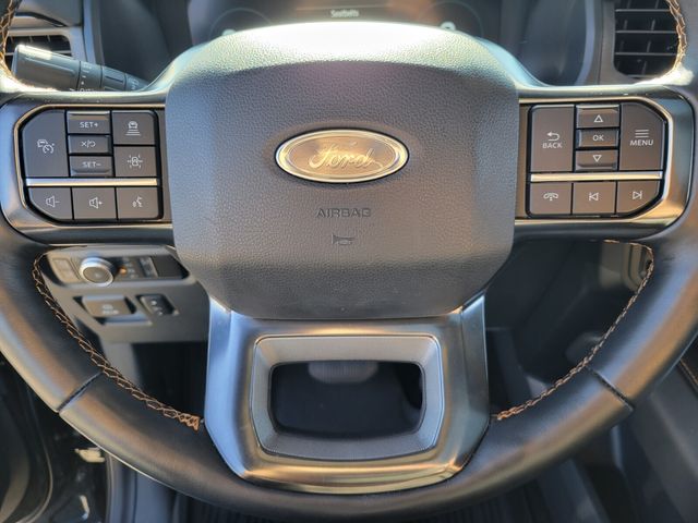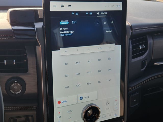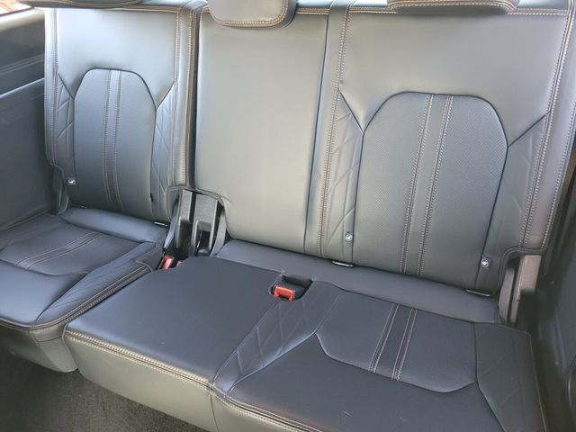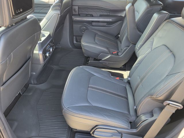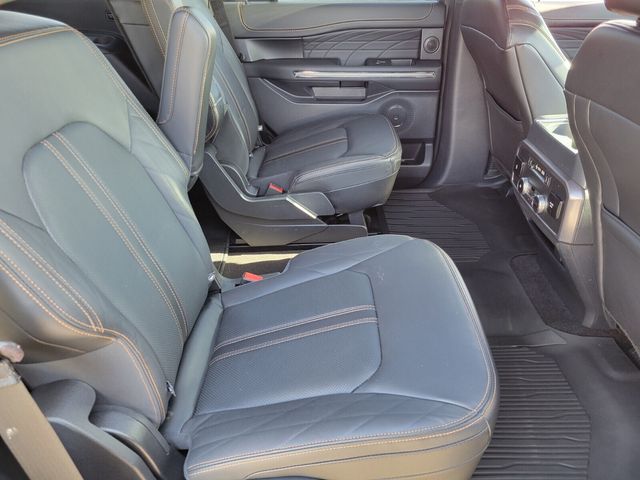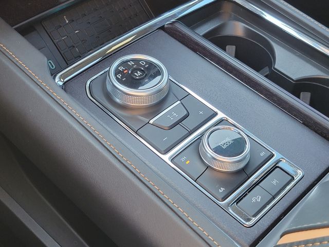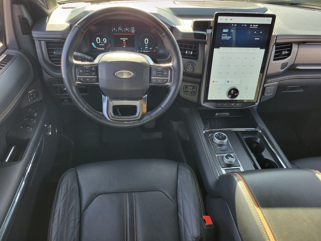 4WD. Equipment Group 600A Standard Package, Heavy-Duty Trailer Tow Package (360-Degree Camera w/Trailer Reverse Guidance, Integrated Trailer Brake Controller, and Pro Trailer Backup Assist), 4WD, 1st & 2nd Row Floor Liners w/Carpet Mats, 22 Speakers, 3rd row seats: split-bench, 4-Wheel Disc Brakes, ABS brakes, Active Park Assist 2.0 Removal, Adaptive suspension, Adjustable pedals, Air Conditioning, Alloy wheels, AM/FM radio: SiriusXM with 360L, Auto High-beam Headlights, Auto-dimming door mirrors, Auto-dimming Rear-View mirror, Automatic temperature control, Black Roof-Rail Crossbars, Brake assist, Bumpers: body-color, Compass, Delay-off headlights, Driver door bin, Driver vanity mirror, Dual front impact airbags, Dual front side impact airbags, Dual-Headrest Rear-Seat Entertainment System, Electronic Stability Control, Emergency communication system: SYNC 4 911 Assist, Exterior Parking Camera Rear, Four wheel independent suspension, Front anti-roll bar, Front Bucket Seats, Front Center Armrest, Front dual zone A/C, Front fog lights, Front reading lights, Fully automatic headlights, Garage door transmitter, Genuine wood console insert, Genuine wood dashboard insert, Genuine wood door panel insert, Hands-Free Foot-Activated Feature Removal, Heated door mirrors, Heated front seats, Heated rear seats, Heated steering wheel, Heated/Ventilated Leather Front Captain's Chairs, Illuminated entry, Leather steering wheel, Low tire pressure warning, Memory seat, Navigation system: Connected Navigation, Occupant sensing airbag, Outside temperature display, Overhead airbag, Overhead console, Panic alarm, Passenger door bin, Passenger vanity mirror, Pedal memory, Power door mirrors, Power driver seat, Power Liftgate, Power moonroof, Power passenger seat, Power steering, Power windows, Radio data system, Radio: B&O Unleashed Sound System by Bang & Olufsen, Rain sensing wipers, Rear air conditioning, Rear anti-roll bar, Rear audio controls, Rear reading lights, Rear window defroster, Rear window wiper, Reclining 3rd row seat, Remote keyless entry, Reversible Cargo Mat, Second Row Power Windows Removal, Security system, SiriusXM w/360L, Speed control, Speed-sensing steering, Speed-Sensitive Wipers, Split folding rear seat, Spoiler, Std Lux Lth Trim Fr Seats w/Multi-Contour Seat Del, Steering wheel memory, Steering wheel mounted audio controls, SYNC 4 w/Enhanced Voice Recognition, Tachometer, Telescoping steering wheel, Tilt steering wheel, Traction control, Trip computer, Turn signal indicator mirrors, Variably intermittent wipers, Ventilated front seats, Voltmeter, and Wheels: 22" 12-Spoke Polished Aluminum.