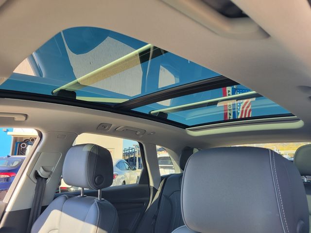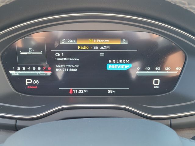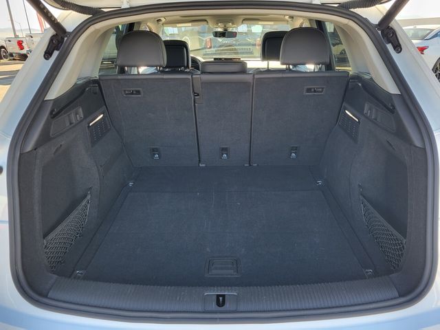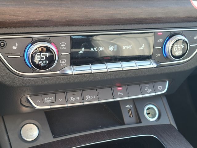 Leather. Leather, 10 Speakers, 4-Wheel Disc Brakes, 5.302 Axle Ratio, ABS brakes, Air Conditioning, Alloy wheels, AM/FM radio, Auto High-beam Headlights, Auto-dimming Rear-View mirror, Automatic temperature control, Brake assist, Bumpers: body-color, Compass, Delay-off headlights, Driver door bin, Driver vanity mirror, Dual front impact airbags, Dual front side impact airbags, Electronic Stability Control, Emergency communication system: Audi connect CARE, Exterior Parking Camera Rear, Four wheel independent suspension, Front anti-roll bar, Front Bucket Seats, Front Center Armrest, Front dual zone A/C, Front fog lights, Front reading lights, Garage door transmitter: HomeLink, Genuine wood console insert, Genuine wood dashboard insert, Genuine wood door panel insert, Heated 8-Way Power Front Bucket Seats, Heated door mirrors, Heated front seats, Heated steering wheel, Illuminated entry, Leather Seating Surfaces, Leather Shift Knob, Leather steering wheel, Low tire pressure warning, Occupant sensing airbag, Outside temperature display, Overhead airbag, Overhead console, Panic alarm, Passenger door bin, Passenger vanity mirror, Power door mirrors, Power driver seat, Power Liftgate, Power passenger seat, Power steering, Power windows, Radio data system, Radio: Audi Sound System, Rain sensing wipers, Rear air conditioning, Rear anti-roll bar, Rear fog lights, Rear reading lights, Rear seat center armrest, Rear window defroster, Rear window wiper, Remote keyless entry, Roof rack, Security system, Speed control, Speed-sensing steering, Speed-Sensitive Wipers, Split folding rear seat, Spoiler, Steering wheel mounted audio controls, Tachometer, Telescoping steering wheel, Tilt steering wheel, Traction control, Trip computer, Turn signal indicator mirrors, Variably intermittent wipers, and Wheels: 18" 5-Arm-Turbine Design.