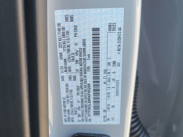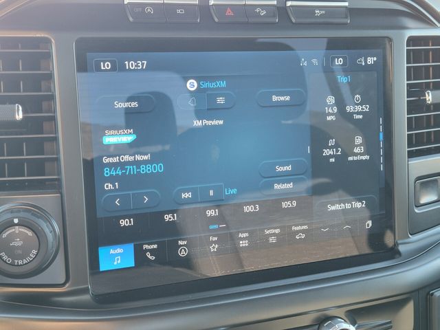 4WD. Bed Utility Package (4 Pickup Box Tie-Down Plates, LED Box Lighting, and Tailgate Step w/Tailgate Work Surface), Equipment Group 301A Standard, FX4 Off-Road Package, Mobile Office Package (Cloth 40/Console/40 Front Seats, Console Worksurface, and Partitioned Lockable Rear Storage), Tow/Haul Package, 4WD, 4-Wheel Disc Brakes, 6 Speakers, ABS brakes, Air Conditioning, Alloy wheels, AM/FM radio: SiriusXM with 360L, Auto High-beam Headlights, Auto-dimming Rear-View mirror, Automatic temperature control, Brake assist, Bumpers: chrome, Chrome wheels, Cloth 40/20/40 Front Seat, Compass, Delay-off headlights, Driver door bin, Driver vanity mirror, Dual front impact airbags, Dual front side impact airbags, Electronic Stability Control, Emergency communication system: SYNC 4 911 Assist, Front anti-roll bar, Front Center Armrest w/Storage, Front dual zone A/C, Front fog lights, Front License Plate Bracket, Front reading lights, Front wheel independent suspension, Fully automatic headlights, Heated door mirrors, Illuminated entry, Low tire pressure warning, Navigation system: Connected Navigation, Occupant sensing airbag, Outside temperature display, Overhead airbag, Overhead console, Panic alarm, Passenger door bin, Passenger vanity mirror, Power door mirrors, Power driver seat, Power steering, Power windows, Radio data system, Radio: AM/FM SiriusXM w/360L, Rear reading lights, Rear step bumper, Rear window defroster, Remote keyless entry, Security system, Speed control, Split folding rear seat, Steering wheel mounted audio controls, SYNC 4 w/Enhanced Voice Recognition, Tachometer, Telescoping steering wheel, Tilt steering wheel, Tough Bed Spray-In Bedliner, Traction control, Trip computer, Variably intermittent wipers, Voltmeter, and Wheels: 18" Chrome-Like PVD.