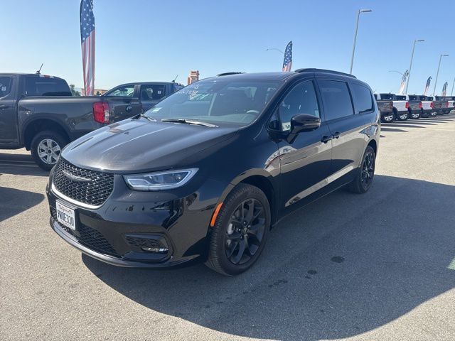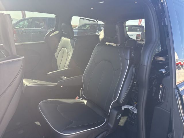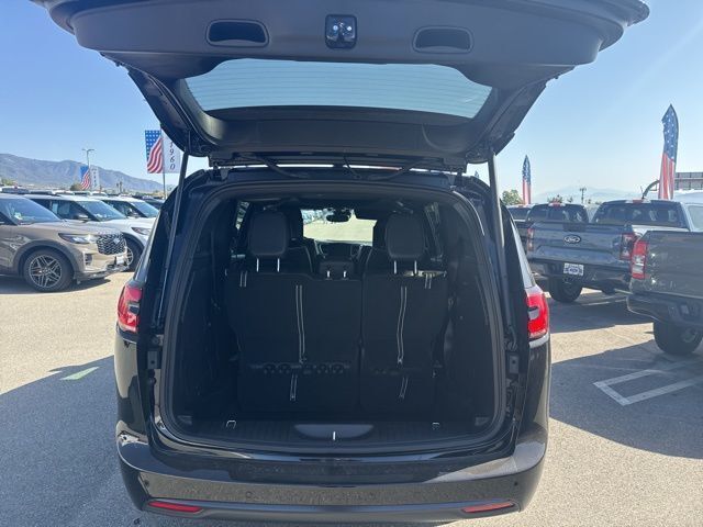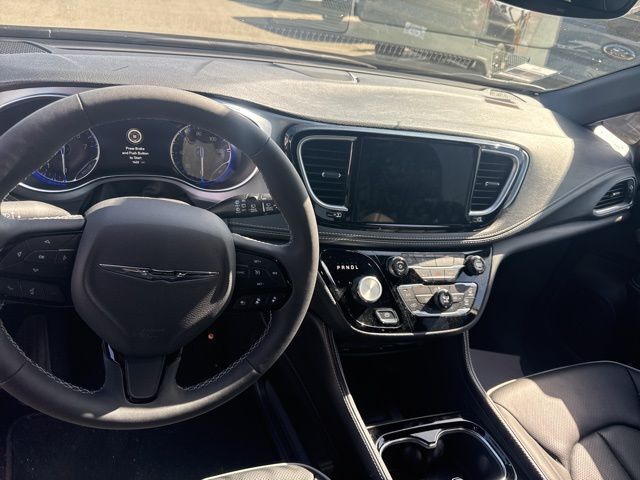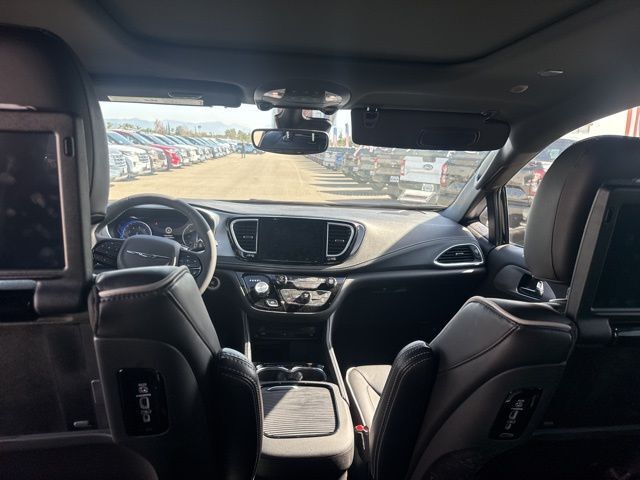 Quick Order Package 27P, S Appearance Package (Anodized Ink Badging, Black Day Light Opening Moldings, Black Stow 'N Place Roof Rack, Gloss Black Exterior Mirrors, Nappa Leather Bucket Seats with S Logo, Premium Fascia Upper/Lower Grille with Black Surround, Premium Rear Fascia Black, S Badge, and Wheels: 20" x 7.5" S-Model Aluminum Design 1), Safety Sphere (360 Surround View Camera System and ParkSense Front/Rear Park Assist with Stop), Uconnect Theater Family Group (115V Auxiliary Power Outlet, 19 Harman/Kardon Speakers with Subwoofer, 2nd and 3rd Row Window Shades, 3-Channel Video Remote Control, 760 Watt Amplifier, Amazon Fire TV Built-in, Blu-Ray/DVD Player/USB Port, FamCAM Interior Camera, Hands Free Sliding Doors, High Definition Multimedia Interface, Integrated Active Noise Cancellation, Seatback Video Screens, Stow N Vac Integrated Vacuum, and Video USB Port), 13 Speakers, 18" x 7.5" Painted Aluminum Wheels, 3.73 Axle Ratio, 3rd row seats: split-bench, 4-Wheel Disc Brakes, ABS brakes, Air Conditioning, Alloy wheels, AM/FM radio: SiriusXM 360L, Apple CarPlay/Android Auto, Audio memory, Auto-dimming Rear-View mirror, Automatic temperature control, AWD Suspension, Black Seats, Brake assist, Bumpers: body-color, Compass, Delay-off headlights, Driver door bin, Driver vanity mirror, Driver's Seat Mounted Armrest, Dual front impact airbags, Dual front side impact airbags, Electronic Stability Control, Emergency communication system: Chrysler Connect, Four wheel independent suspension, Front anti-roll bar, Front Bucket Seats, Front dual zone A/C, Front fog lights, Front reading lights, Fully automatic headlights, Garage door transmitter, Heated door mirrors, Heated front seats, Heated rear seats, Heated steering wheel, Illuminated entry, Knee airbag, Low tire pressure warning, Memory seat, Nappa Leather Bucket Seats, Navigation System, Occupant sensing airbag, Outside temperature display, Overhead airbag, Overhead console, Panic alarm, ParkView Rear Back-Up Camera, Passenger door bin, Passenger seat mounted armrest, Passenger vanity mirror, Power door mirrors, Power driver seat, Power Liftgate, Power moonroof, Power passenger seat, Power steering, Power windows, Radio data system, Radio: Uconnect 5 Nav with 10.1" Display, Rain sensing wipers, Rear air conditioning, Rear reading lights, Rear window defroster, Rear window wiper, Reclining 3rd row seat, Remote keyless entry, Roof rack, Security system, Speed control, Split folding rear seat, Spoiler, Steering wheel mounted audio controls, Tachometer, Telescoping steering wheel, Tilt steering wheel, Traction control, Trip computer, Turn signal indicator mirrors, Variably intermittent wipers, Ventilated front seats, and Voltmeter.